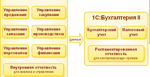 В 1С: УНФ можно настроить автоматическую выгрузку справочников и документов в бухгалтерскую программу и наоборот. Обмен с 1С: Бухгалтерией 8 или с 1С: Розницей 8 проводится по инициативе пользователя по расписанию. Предоставляет возможности: