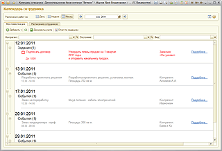 В программе "1С:Управление небольшой фирмой 8" регистрируются как уже совершенные, так и планируемые хозяйственные операции и события. Например, обязательства перед клиентами, заказы покупателей, состояние заказов, задания сотрудников, планируемая загрузка ресурсов предприятия, планы-графики выполнения работ, производства, планы продаж и много другое.
